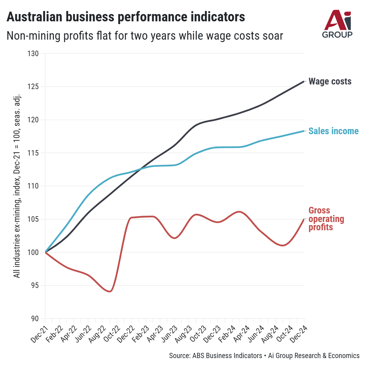 "The soaring national wages bill is putting increasing pressure on business balance sheets, which augurs poorly for a return to private sector growth," said Innes Willox, Chief Executive of national employer peak body the Australian Industry Group.